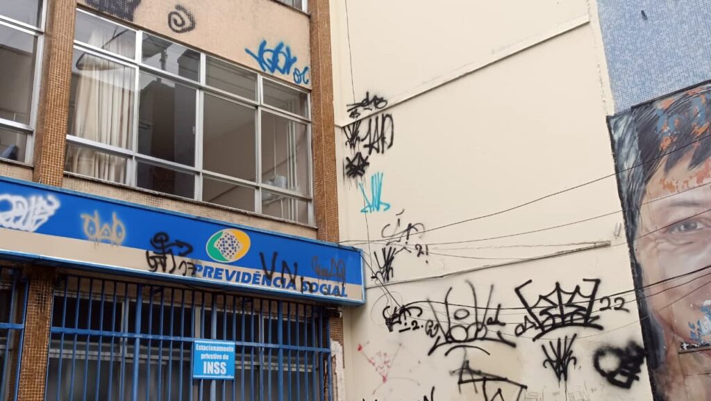 Em maio ano passado, O Diário publicou reportagem atentando para a crítica situação de um dos prédios de órgão do governo federal no município, equipamento que, apesar de grande importância, estava bem longe das condições ideais para o atendimento à população. Na ocasião, foi informado à redação que seria realizada uma grande reforma. Tanto tempo depois, porém, a situação é ainda pior: aumentou o número de pichações, segue um tapume gigante na calçada e letreiro com o nome do INSS desapareceu.