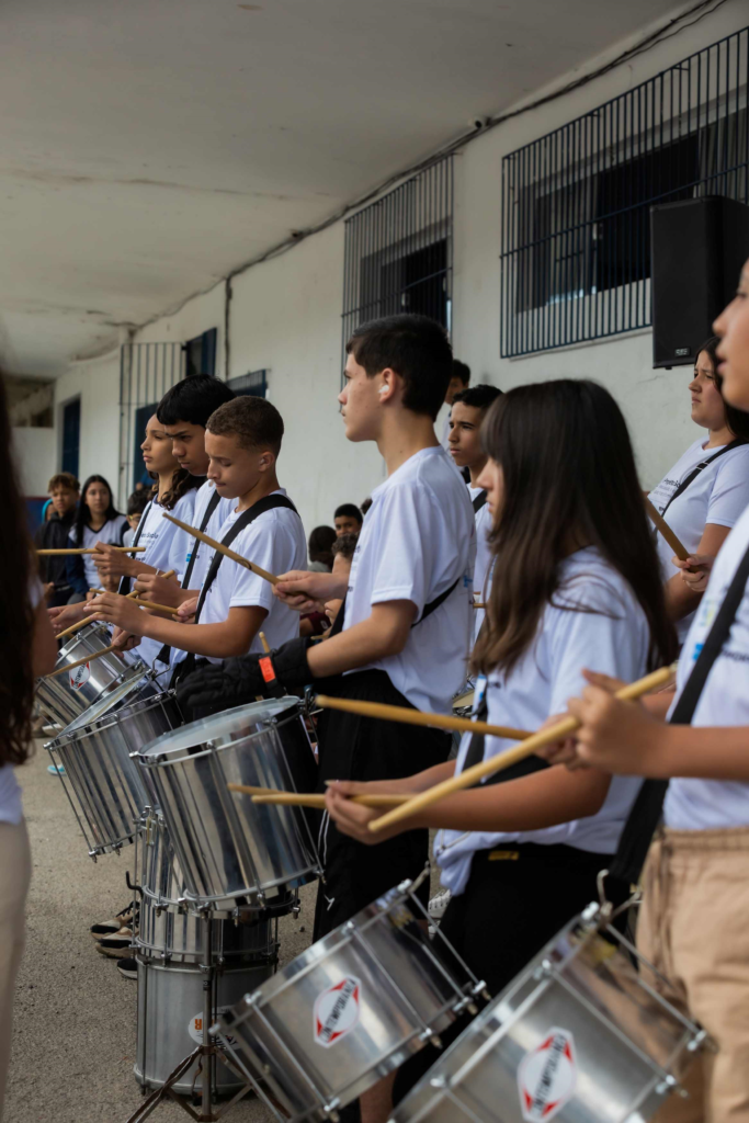 O coordenador do projeto, Ernani Cal, destacou a importância da música na vida das pessoas. “O projeto vem ganhando maturidade. Começamos na escola em 2019, tivemos uma pausa durante a pandemia, e voltamos com tudo! A música tem efeitos sobre o ser-humano que ainda não conseguimos mensurar. É uma atividade de formação do sujeito, de pensamento matemático, contexto histórico e cultural. A música salva vidas!”, comentou o músico que integra o Monobloco, bloco de carnaval que mistura samba, funk, marchinha e muito mais, tudo com instrumentos de escola de samba, levando alegria e ritmo para as ruas do Rio de Janeiro desde 2000.