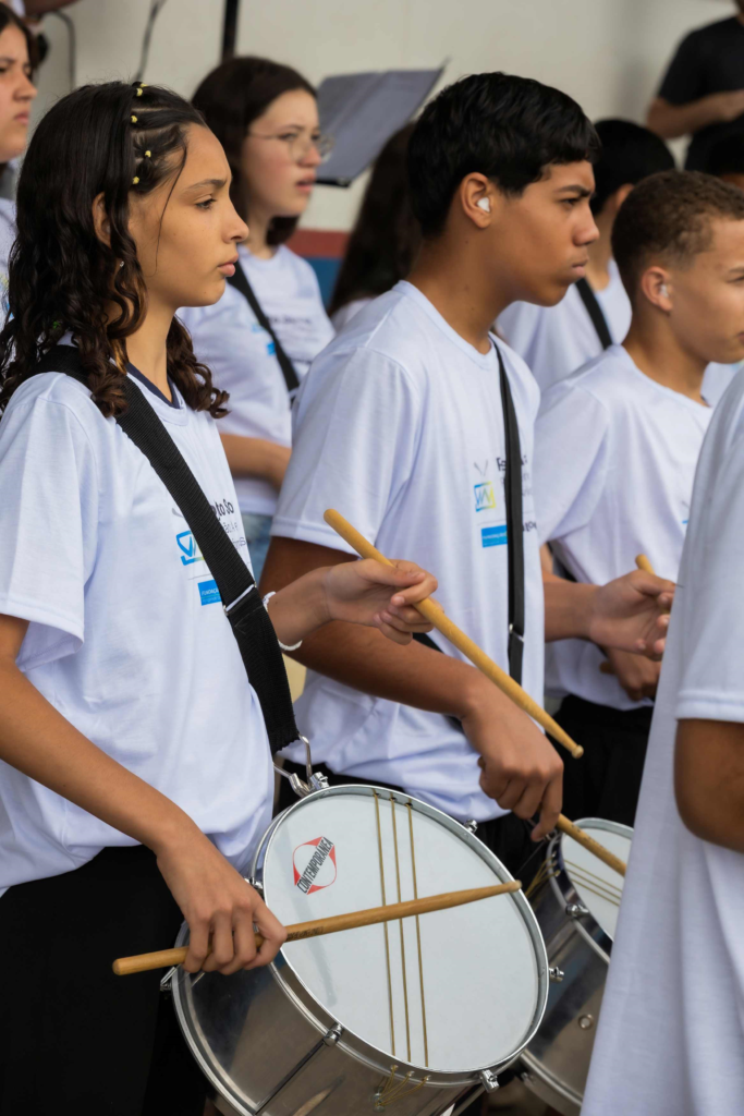 O evento que celebrou a jornada musical dos pequenos grandes artistas da escola contou com a presença de familiares dos estudantes, funcionários e equipe gestora da unidade de ensino, além de representantes da SME. Os alunos mostraram tudo que aprenderam tocando ritmos incríveis da música brasileira, como ‘Minha jangada vai sair pro mar’, ‘Não deixe o samba morrer’, ‘Segue em frente não se apavora’, ‘Garota Nacional’ e ‘Eu quero é botar o meu bloco na rua’.