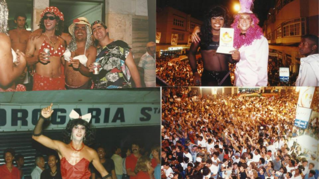 Nos primeiros anos o bloco enfrentou o preconceito, chegando a levar às ruas o enredo “Heróis da Resistência”, mas hoje é um marco na história do Carnaval em Teresópolis, sempre tendo à frente o carnavalesco Mário Aranha. Foto: Arquivo Piranhas