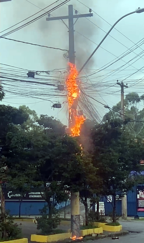 Mais um caso de risco e prejuízo após fogo atingir rede elétrica e poste em Teresópolis, dessa vez no cruzamento das ruas Rui Barbosa e Nilza Chiapetta Fadigas, a antiga Cotinguiba, na Várzea. A situação ocorreu na tarde desta terça-feira (13) e as causas ainda são desconhecidas, mas importante frisar que esse é mais um trecho onde há grande número de fios acumulados no poste da Enel. O Corpo de Bombeiros foi acionado para controlar as chamas, com o trânsito fechado pela Guarda Civil Municipal até a finalização do serviço. Serviços como e energia elétrica internet em estabelecimentos comerciais foram prejudicados com a situação, com algumas empresas já iniciando os reparos logo após a saída da equipe do 16ºGBM.