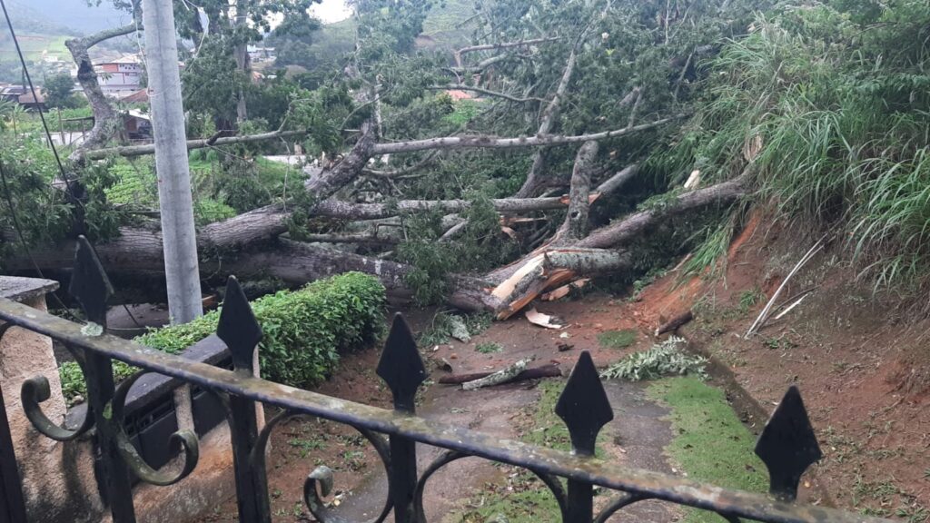 A passagem de um ciclone extratropical causou muitos prejuízos nas regiões Sul e Sudeste do país nesta terça (09) e quarta-feira (10). Em Teresópolis, ocorreu apenas um ‘reflexo’ desse fenômeno climático, mas já foi o suficiente para gerar muitos problemas e medo na população, independente da localidade de residência – se em áreas de risco ou não. Nesse período, a Secretaria Municipal de Defesa Civil foi acionada para dezenas de ocorrências, com a grande maioria relacionada à queda de árvores ou risco de tombamento de exemplares vegetais. Na Estrada de Serrinha, região de Vargem Grande, uma grande árvore fechou totalmente a passagem de veículos. Na Estrada Abelardo da Cunha, entre Jardim Serrano e Quebra-Frascos, a rede elétrica foi atingida pela vegetação e um poste acabou sendo projetado contra o solo.