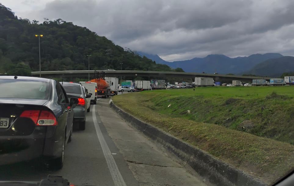 Rio-Teresópolis fechada no trecho de Serra e um longo engarrafamento na rodovia BR-116. Foto: Leitor Repórter