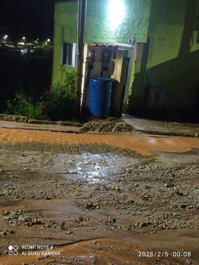 Moradores da Rua Michel R. Hucker, no bairro Granja Florestal, enfrentaram mais uma noite de transtornos provocados pelas fortes chuvas e por uma obra em andamento na via. A falta de drenagem adequada e o acúmulo de detritos resultaram na invasão de lama, pedras e sedimentos em residências localizadas na parte mais baixa da rua. O fato, que havia ocorrido no domingo (01), voltou a se repetir na madrugada desta quinta-feira (05).