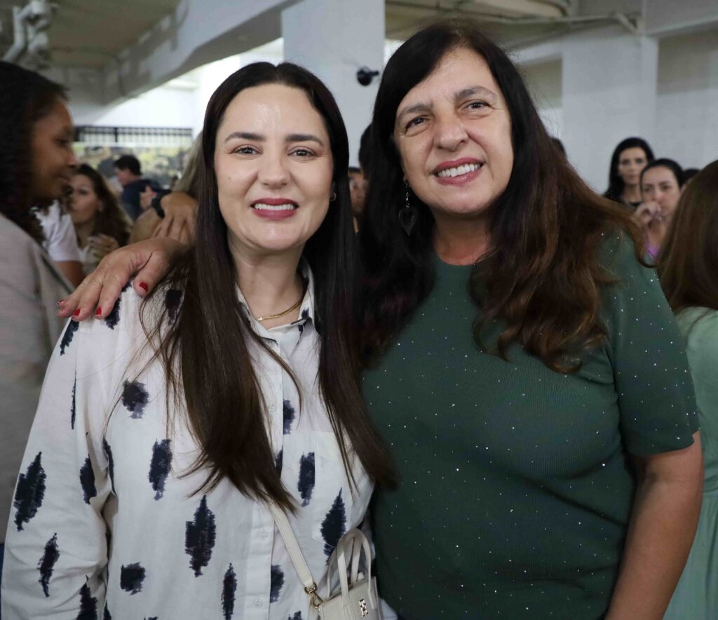 Primeira-dama, Claúdia Vasconcellos, e Rosane Martins, diretora da Escola M. Antonio Custódio. Foto: AsComPMT