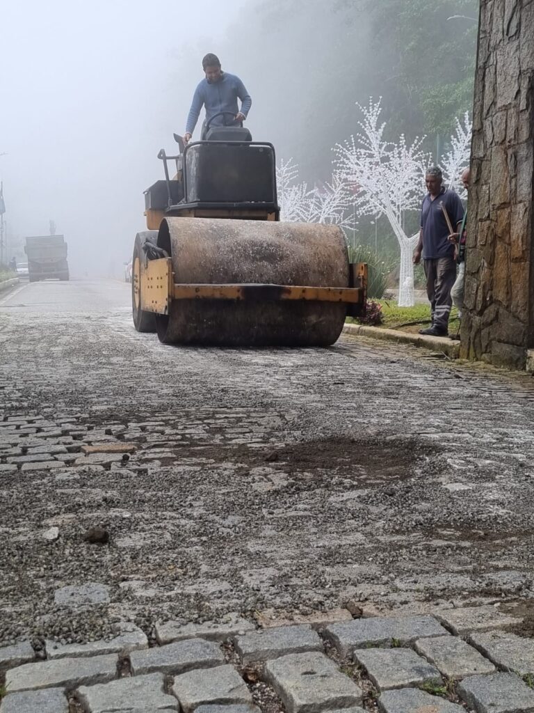 Na fria manhã desta terça-feira (04), funcionários da Secretaria Municipal de Obras e Serviços Públicos estiveram na Avenida Rotariana, no Soberbo, para realizar a intervenção prevista para o calçamento na área do Pórtico do Centenário. A passagem, ainda em paralelepípedos, estava comprometida há algumas semanas e piorava em consequência das últimas chuvas. Todos os paralelos em posição irregular foram retirados, a base da via preparada e as tradicionais pedras recolocadas na posição correta, recebendo em seguida cascalhinho.