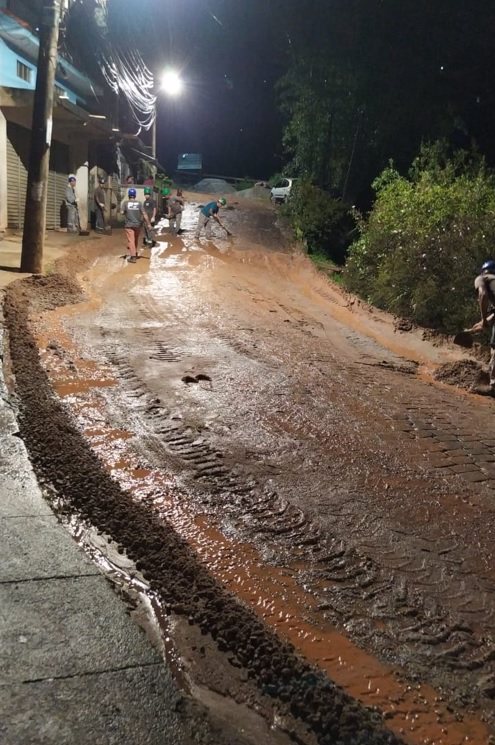 Temporal arrasta calçamento, lama invade casas e deixa via intransitável na Granja Florestal