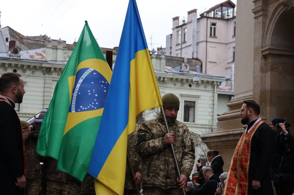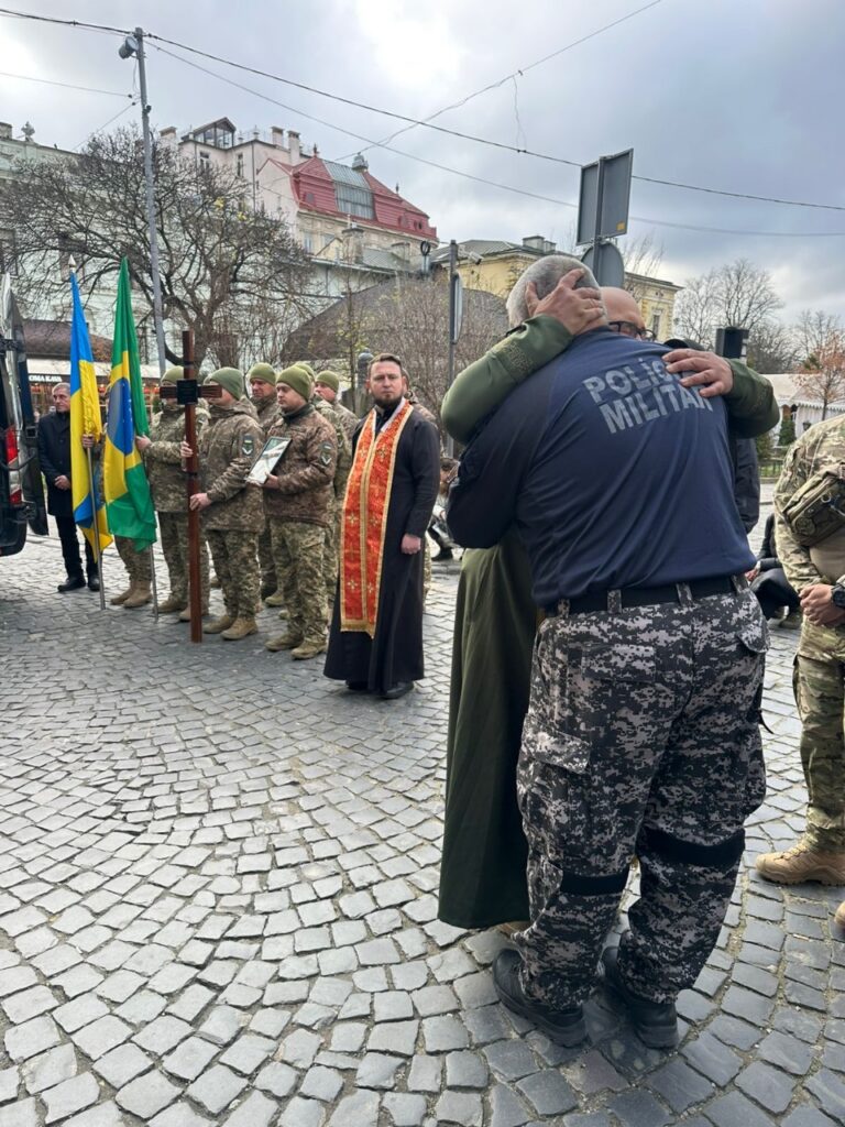 Brasileiro recebeu as homenagens reservadas aos heróis que têm defendido a Ucrânia contra a invasão russa. Foto: Reprodução