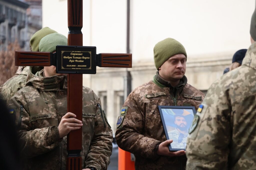 O funeral de Luís Felipe ocorreu na Igreja da Guarnição dos Santos Apóstolos Pedro e Paulo, em Lviv, oeste da Ucrânia; em seguida, foi realizada uma cerimônia de despedida na Praça Rynok e o sepultamento foi realizado no Cemitério de Lychakiv, em campo destinado aos homens e mulheres que perderam a vida na batalha contra a invasão russa. “Não existe palavra em idioma algum que explique a dor de perder um filho”, publicou o ‘Sargento Luis’ em suas redes sociais.