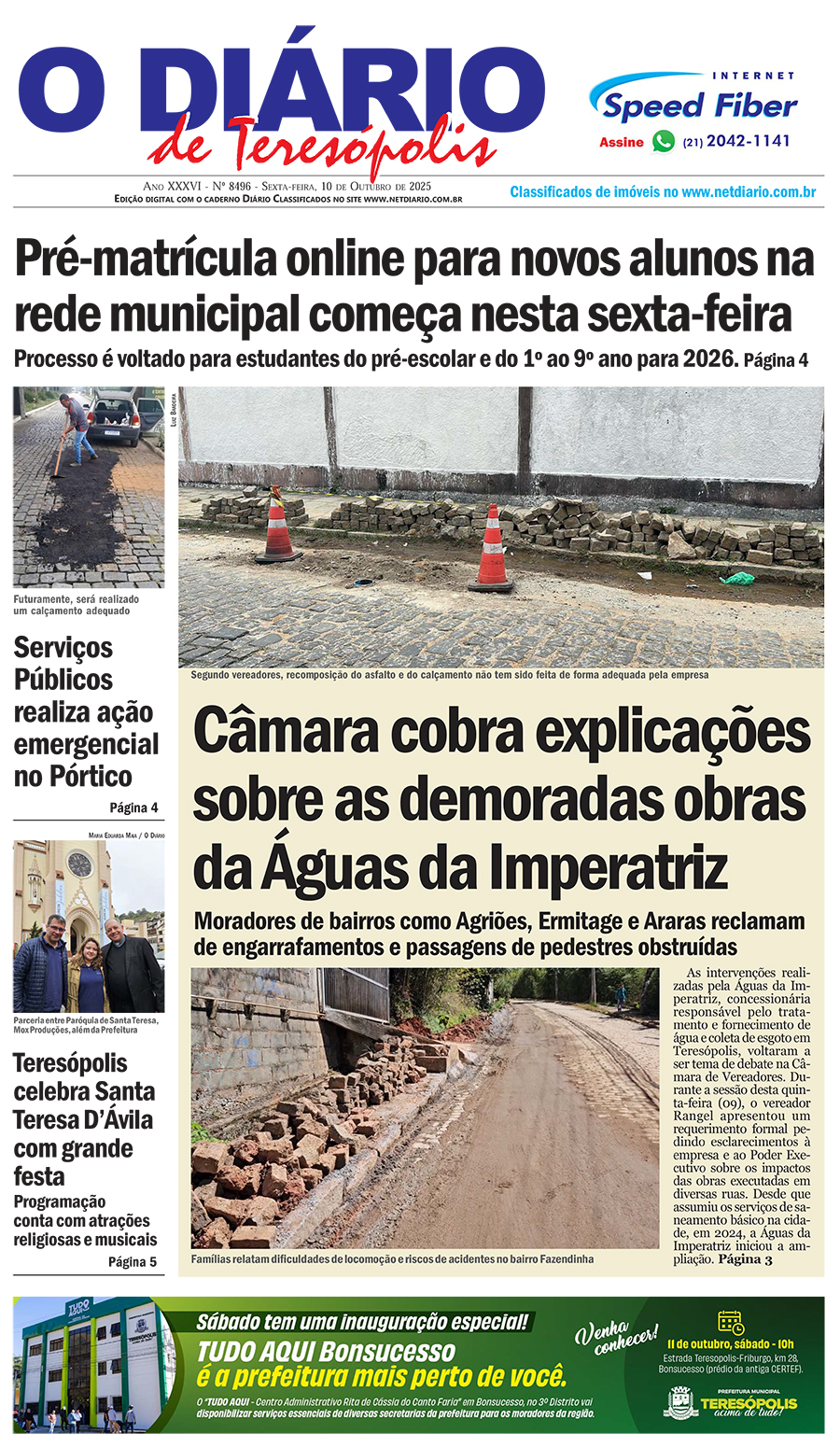 Câmara cobra explicações sobre obras lentas e inacabadas da Águas da Imperatriz