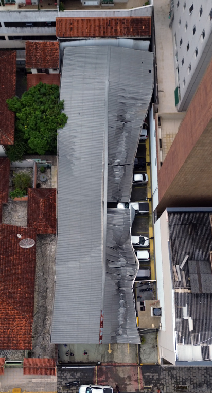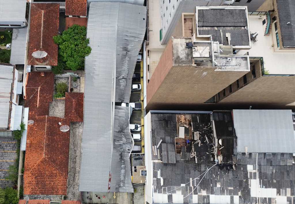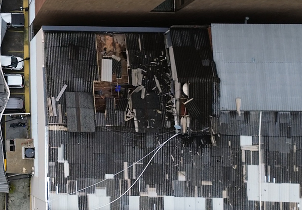 A Quarta-Feira de Cinzas começou como um típico dia de Verão. Muito calor, tempo abafado e… de repente uma forte chuva, que chegou acompanhada de um vendaval. E a ventania acabou causando mais prejuízos que a precipitação, arrancando telhados, derrubando árvores e retirando letreiros de lojas na região central do município. O maior problema ocorreu na Rua Carmela Dutra, em Agriões, onde o telhado de um estacionamento foi balançado pelo vendaval e cedeu parcialmente, com a estrutura tombando em direção ao pátio. Não havia ninguém no local e, apesar do grande prejuízo para o estabelecimento, apenas um dos veículos guardados no local foi mais afetado.