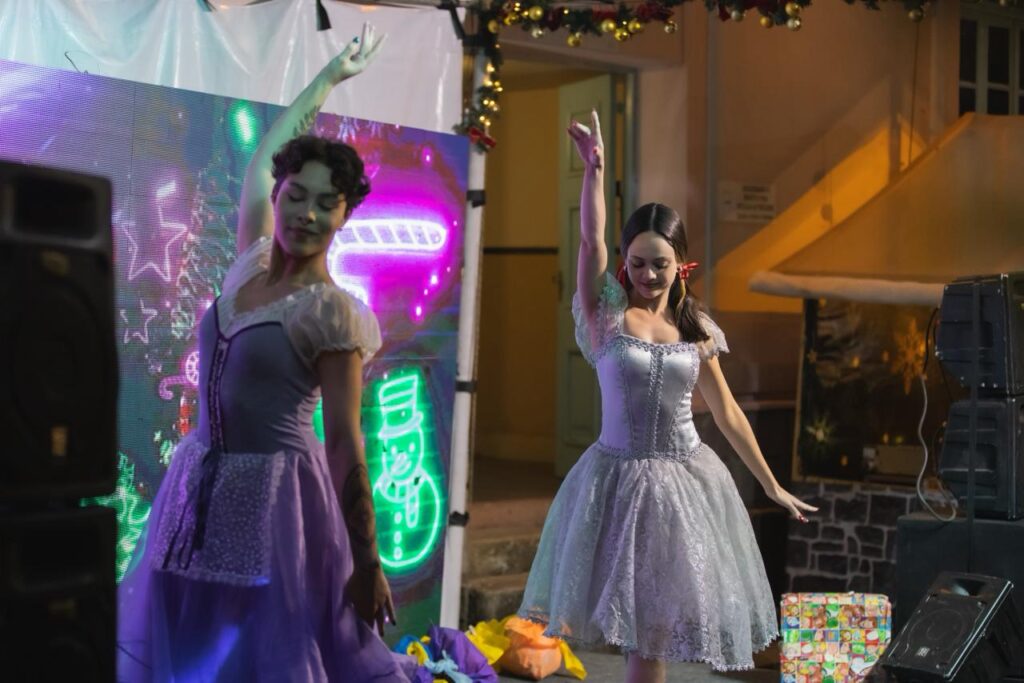 A Vila do Papai Noel foi palco de uma noite inesquecível nesta segunda-feira (22). Com grande presença de público, o espaço cenográfico viveu momentos de pura magia, emoção e alegria, confirmando o sucesso do Natal Iluminado em seu primeiro ano na cidade. O ponto alto da programação foi a apresentação do Grupo Dias de Dança, com a peça “Sequestraram o Papai Noel”. O espetáculo arrancou risadas, despertou a imaginação das crianças, ansiosas pelo “resgate” do Bom Velhinho, e também conquistou os adultos, que cantaram junto os clássicos natalinos, em estado de nostalgia.