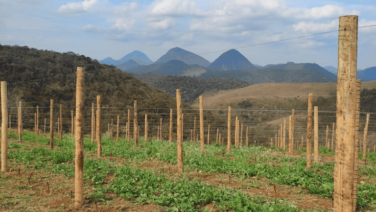As condições naturais da propriedade favorecem a produção de vinhos de excelência: terreno ensolarado, boa amplitude térmica e vista deslumbrante das montanhas. Entre as variedades cultivadas estão Sauvingnon Blanc e Syrah — esta última com adaptação especialmente promissora ao terroir serrano, em linha com experiências bem-sucedidas em outras vinícolas da região.
